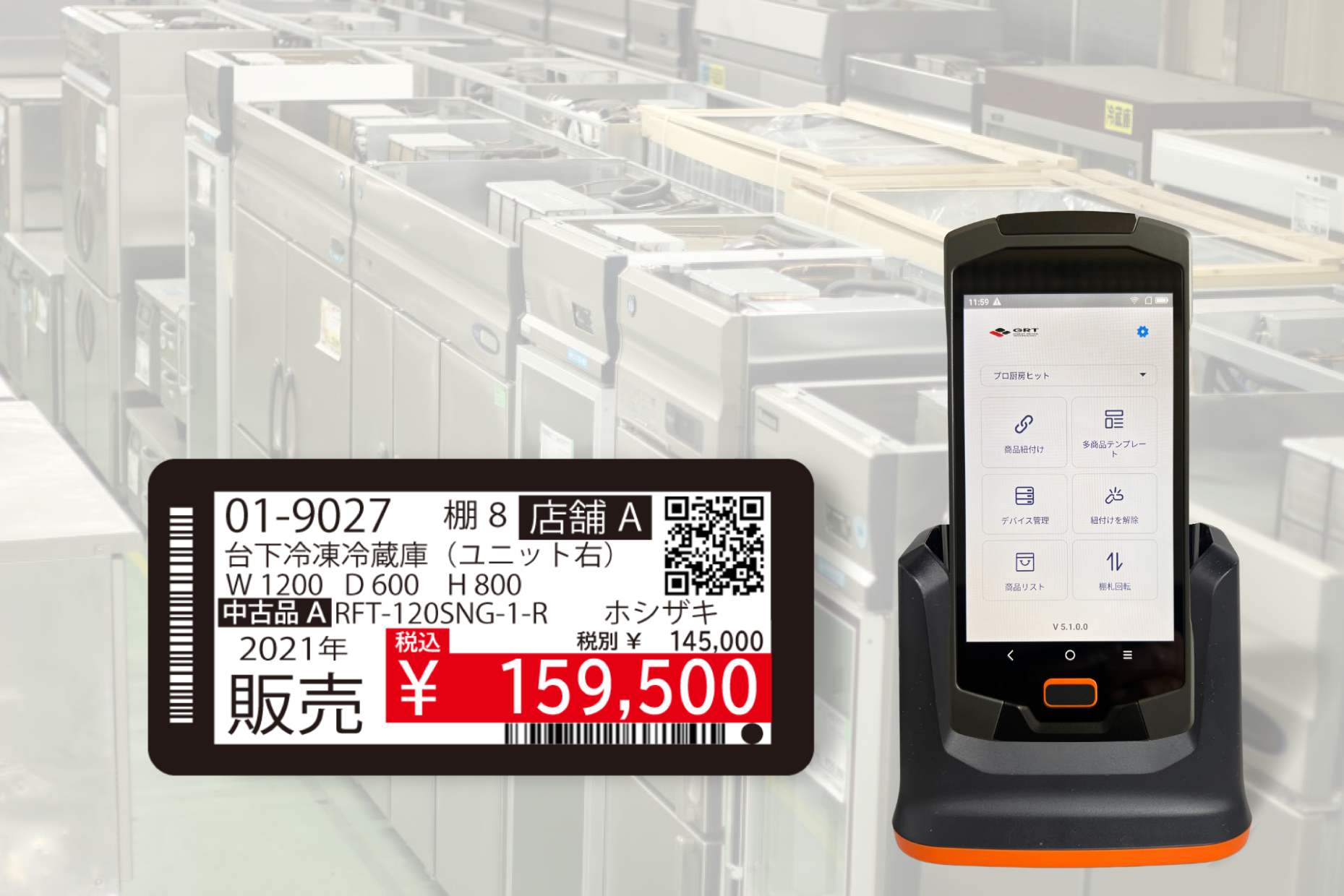 厨房君の在庫データを「商談中」「売約済」に変更するだけで、その情報が即座にESLに反映されます。 これにより、正確な在庫データを店舗や倉庫の商品に反映される環境が整うため、売約札を貼ったり、在庫状況の確認を行うといった、従来の手間をかけずに在庫が常に整います。